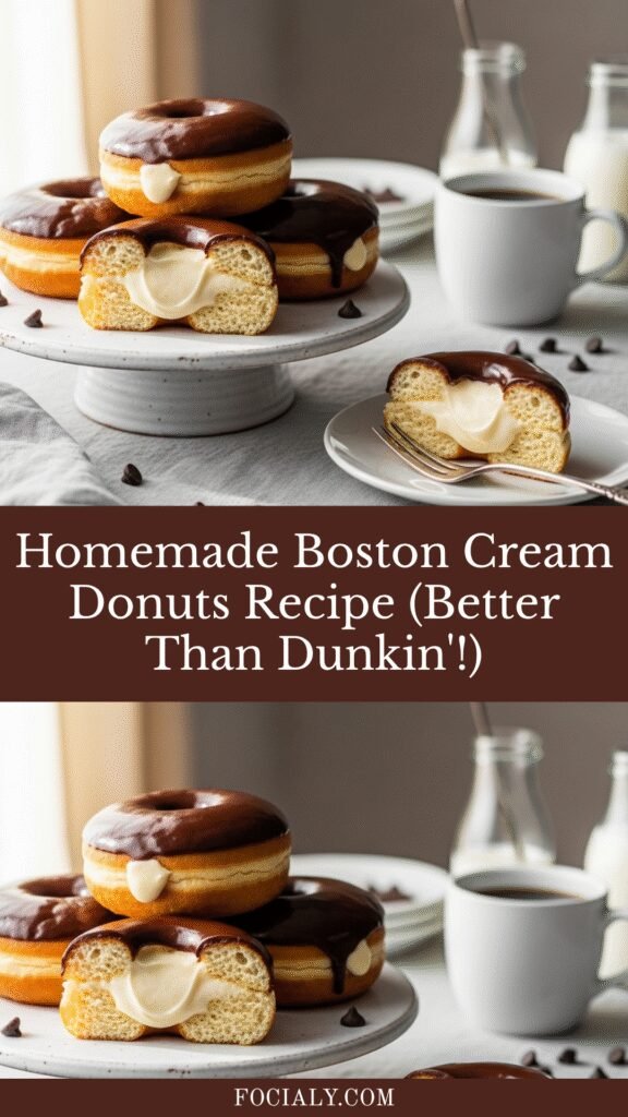 These homemade Boston cream donuts are perfect for weekend breakfast treats, special brunch gatherings, birthday celebrations, or whenever you want to impress your family and friends with your baking skills. The combination of fluffy fried dough, creamy vanilla filling, and glossy chocolate topping creates a dessert experience that’s truly unforgettable. Plus, there’s something incredibly satisfying about making these iconic donuts from scratch in your own kitchen.