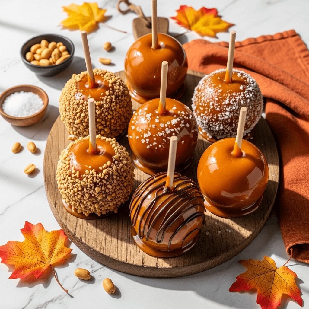 S’mores Caramel Apples: Roll in crushed graham crackers and top with mini marshmallows, then torch the marshmallows lightly with a kitchen torch for a campfire-inspired creation.