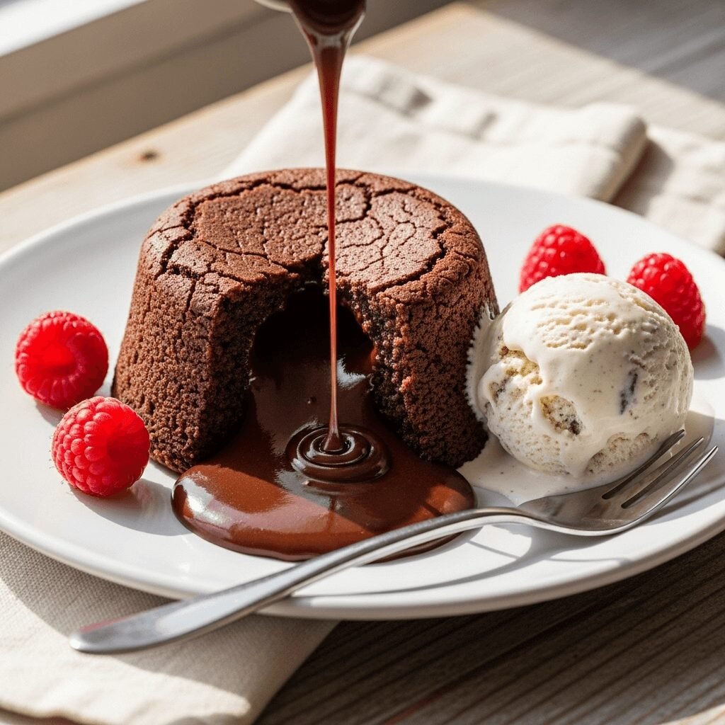 - Optional garnish: Dust with powdered sugar, add a scoop of vanilla ice cream, garnish with fresh raspberries, or drizzle with chocolate sauce. Serve with a spoon so guests can break into the center and enjoy the lava flow!