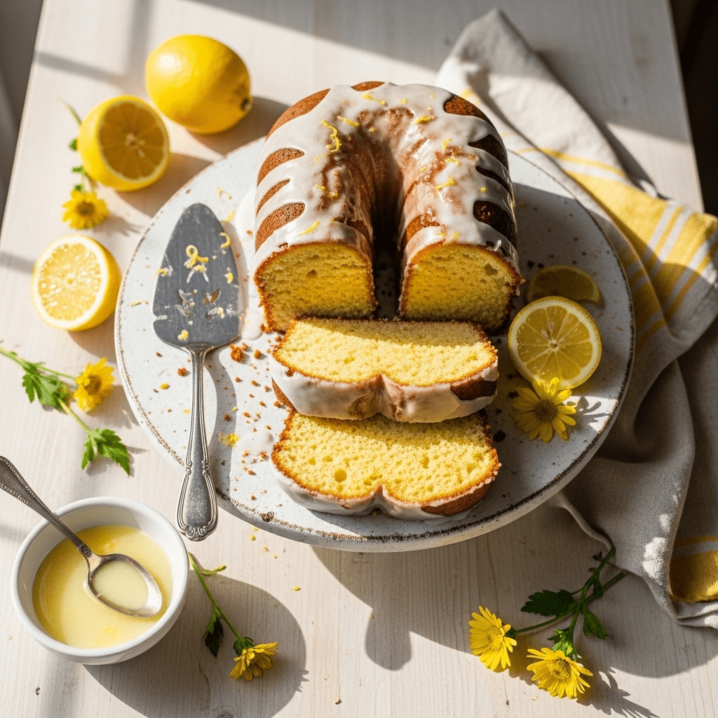 Glazed and Garnished: Finish with lemon glaze and garnish with candied lemon slices, fresh lemon zest, or edible flowers for special occasions.