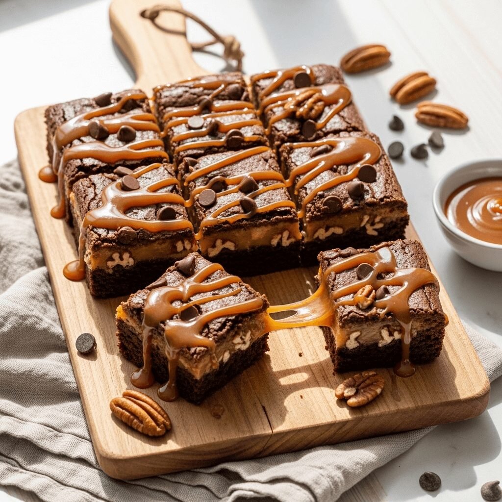 Elegant Presentation: Plate individual brownies with a dollop of freshly whipped cream, a drizzle of extra caramel sauce, and a few whole pecans. Dust with powdered sugar and add a mint leaf for a restaurant-quality presentation.